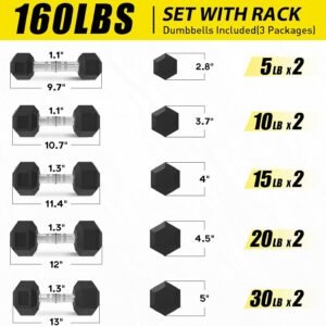 Rubber Hex Dumbbell Set with Racks, Multiple Options in 160/200/380/450/550lbs, Strength Training Weight Set Home Gym(New)