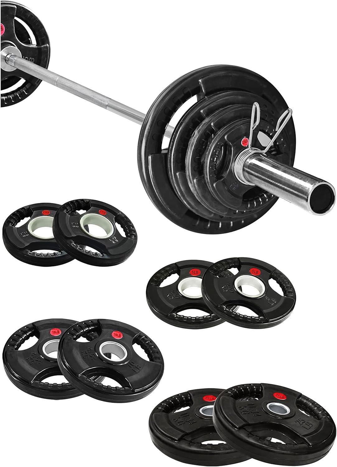 - Plates are made of solid cast iron with a 2-inch center hole fits any Olympic bar with diameter 2” or less; Can be ed with 2” dumbbell bars too